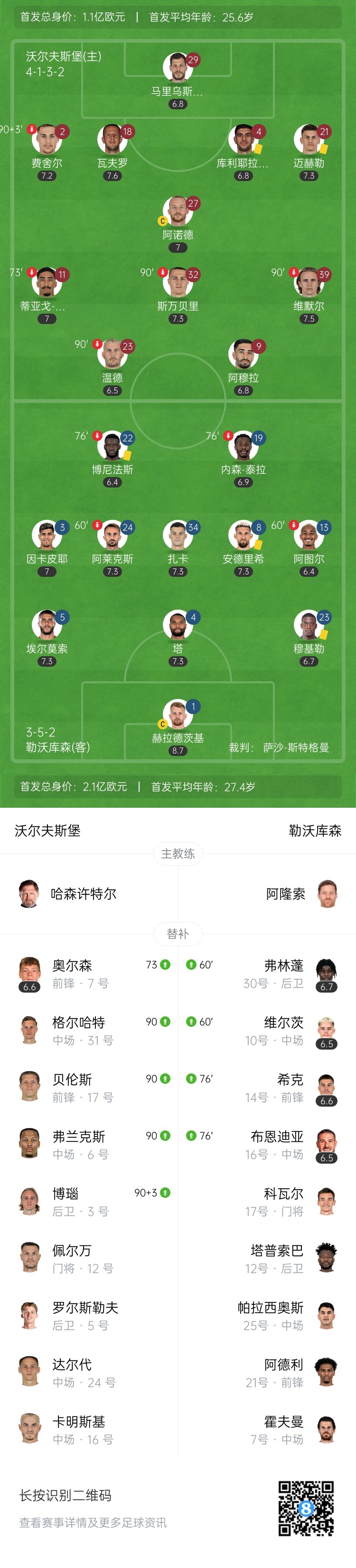 【双方首发及换人信息】