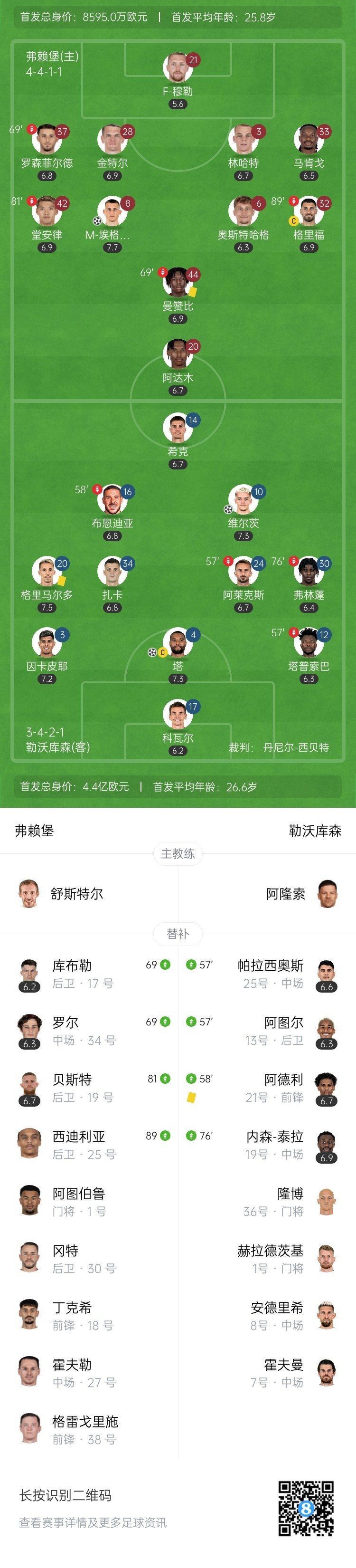 第44分钟,弗赖堡取得领先,埃格施泰因禁区外围调整之后起脚远射,皮球飞入球网,弗赖堡1-0领先勒沃库森。↓