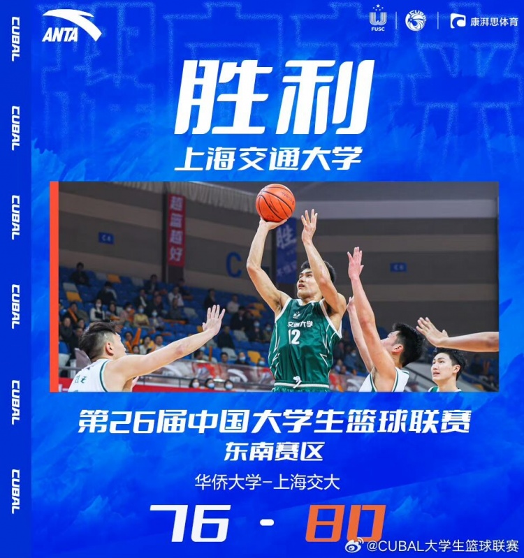 🏀CUBAL-顿家威27+8 陈天灿16+6 上海交大加时险胜华侨大学