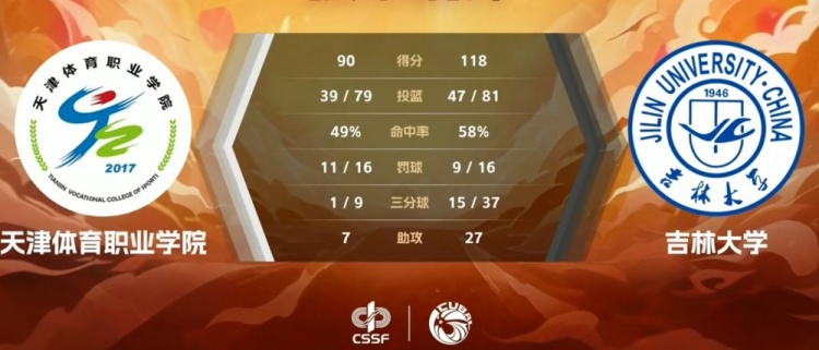 吉林大学:王鹏28分8助、罗奕桐24分、李永涵16分、刘滨畅12分7板、艾诚熙10分