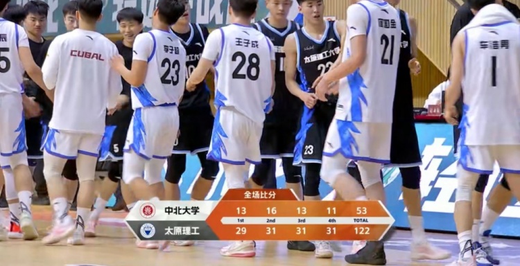 末节比赛,虽然太原理工已经大比分领先,但是在本节前三分钟的时间里他们还是轰出一波16-0的攻势,分差继续突破60分,中北大学半节的时间只拿到4分,最终太原理工122-53大胜中北大学保持不败。