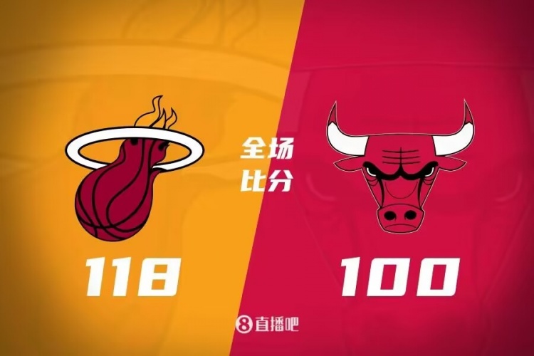 开场后热火多点开花又是以12-2占得先机,公牛经过暂停调整回敬攻势咬住比分,此后热火不断冲击内线保持领先。第二节上来公牛延续状态继续缩小分差,哈克斯站出来连连拿分,热火缓过劲来在半场结束前打出高潮领先12分结束上半场。下半场回来公牛外线手感不错连连远投命中,不过热火总能及时回应没有让公牛缩小分差,末节热火依旧占据主动继续扩大优势,公牛进攻乏力追分无望,最终热火118-100成功复仇公牛。
