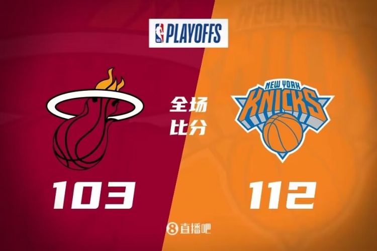 上半场,尼克斯开场阶段非常慢热,热火多点开花取得两位数领先,次节布伦森挺身而出,得分助攻一肩挑带队轰出18-2的进攻高潮一举反超比分,巴特勒连投带罚拿分稳住局势,半场战罢尼克斯50-47领先3分。下半场,热火进攻突然停滞,半节的时间仅拿到7分,尼克斯火力全开,一举将分差拉开到19分,热火及时回暖打出进攻高潮迅速迫近比分,末节尼克斯命中率下降,热火一波9-0将分差缩小到只剩4分,双方争夺陷入白热化,斯波教练祭出砍人战术,米切尔-罗宾逊4罚3中,关键时刻热火连续打铁失误,巴雷特发球5秒违例但热火没能抓住机会,尼克斯惊险保住胜利。最终,尼克斯112-103力克热火,将总比分扳成2-3。
