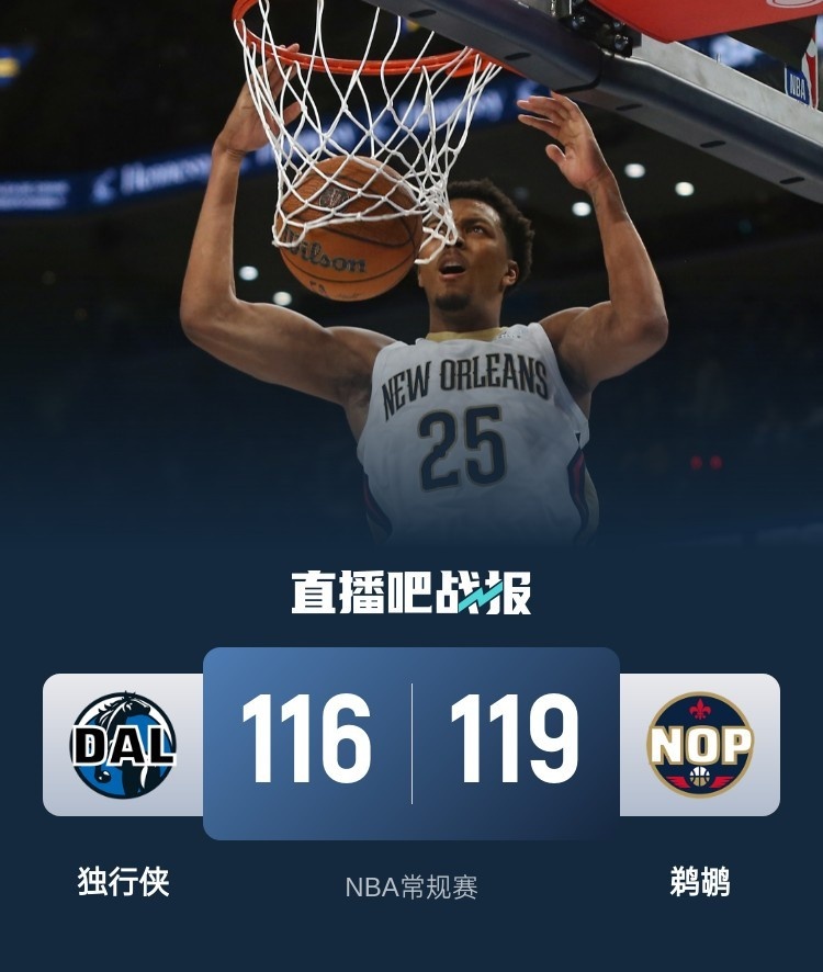 🏀穆雷30+7+7 墨菲24+10&制胜封盖 独行侠三人20+负鹈鹕遭3连败