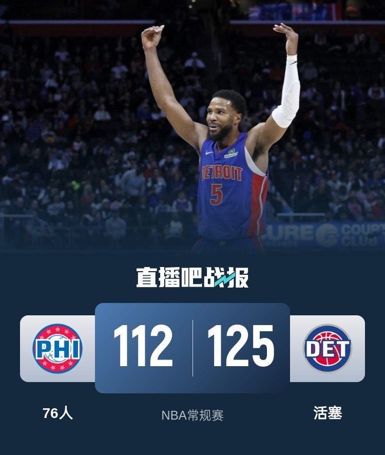 🏀恩比德23+7&上半场仅3分 比斯利36分 76人三巨头合体不敌活塞