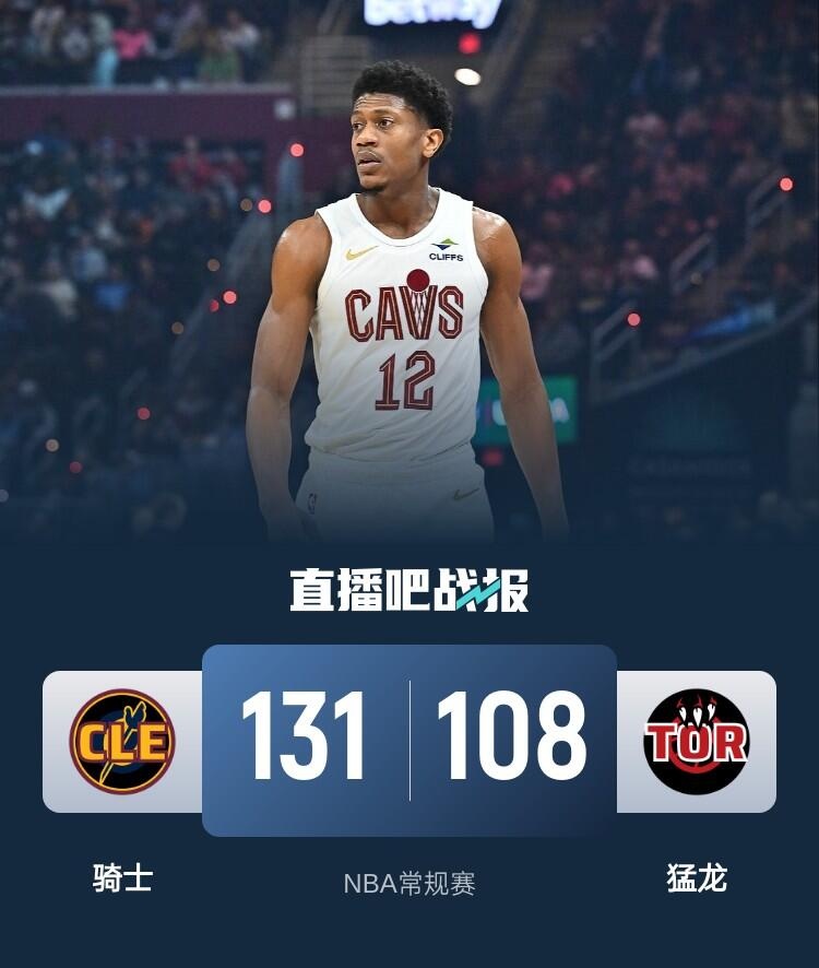 比赛开始,骑士火力全开,斯特鲁斯连中三分,帮助球队攻防两端碾压对手很快取得20分以上优势,次节猛龙进攻回暖,但骑士稳扎稳打,多点开花牢牢占据场上主动,半场战罢骑士68-43领先猛龙。易边再战,骑士延续火力一度将分差拉开到39分,猛龙轰出22-5缩小分差,末节骑士稳扎稳打保持优势,猛龙换下主力投子认负,垃圾时间特里斯坦-汤普森暴扣还一度引发摩擦。最终,骑士131-108再胜猛龙,赛季完成横扫。
