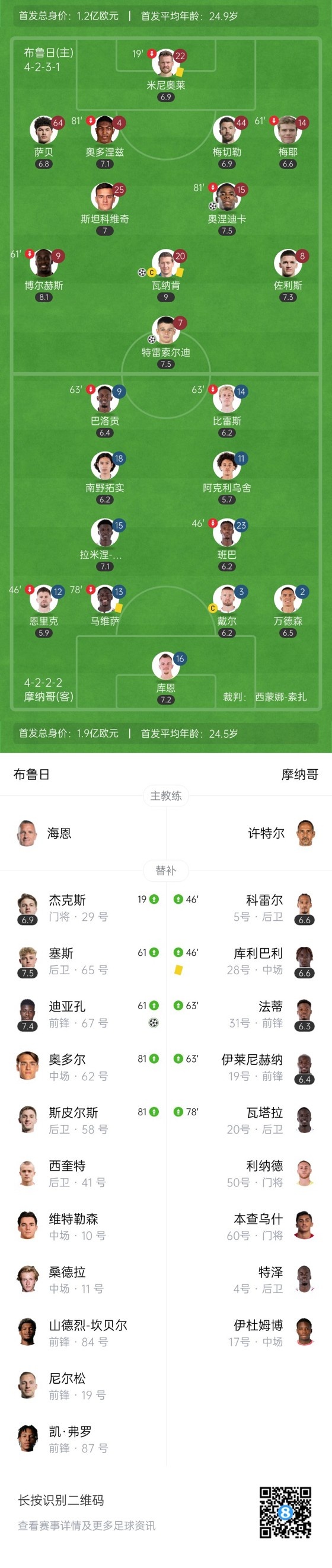 下半场补时3分钟,布鲁日4-1摩纳哥。