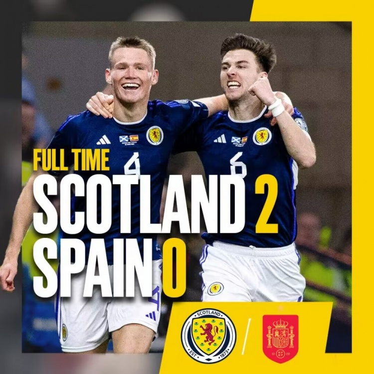 3月29日讯 北京时间3月29日凌晨2时45分,欧洲杯预选赛A组第2轮,西班牙客场对阵苏格兰。上半场,罗伯逊助攻麦克托米奈破门。西班牙半场0-1落后苏格兰。下半场,麦克托米奈再下一城。最终西班牙客场0-2不敌苏格兰。