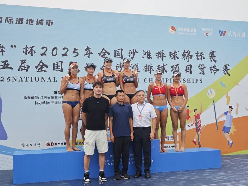 石榴云/新疆日报讯(记者 黄兴报道)9月7日,2025年全国沙滩排球锦标赛暨第十五届全国运动会沙滩排球项目资格赛在江苏盐城落下帷幕。在女子组比赛中,新疆二队的卡德丽叶·哈来提/阿黑旦·木沙江与一队的王婧哲/夏欣怡包揽冠亚军。