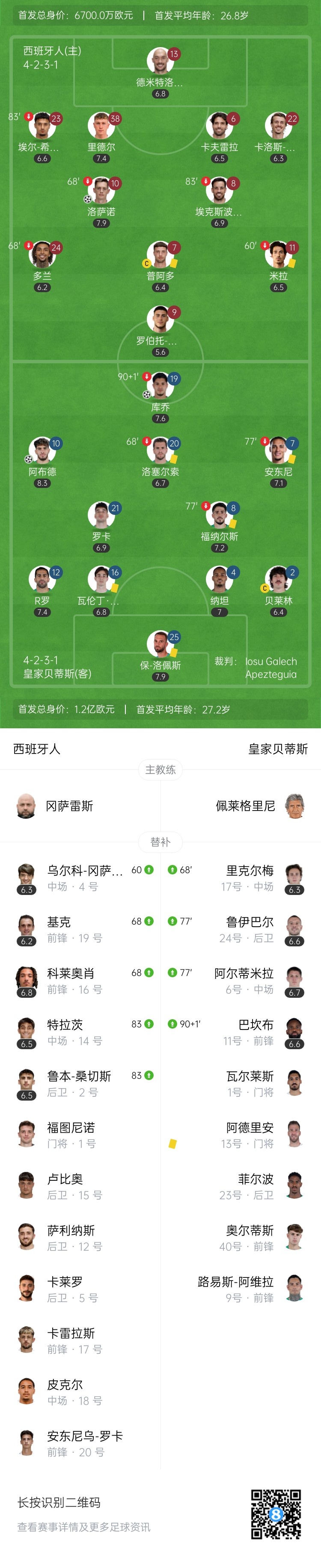 第90+13分钟,主裁判经过长时间VAR回看后,判罚贝蒂斯球员在禁区内对对手肘击,西班牙人获得点球!普阿多主罚点球被保-洛佩斯神勇扑出!比赛随即结束!皇家贝蒂斯客场带走胜利↓