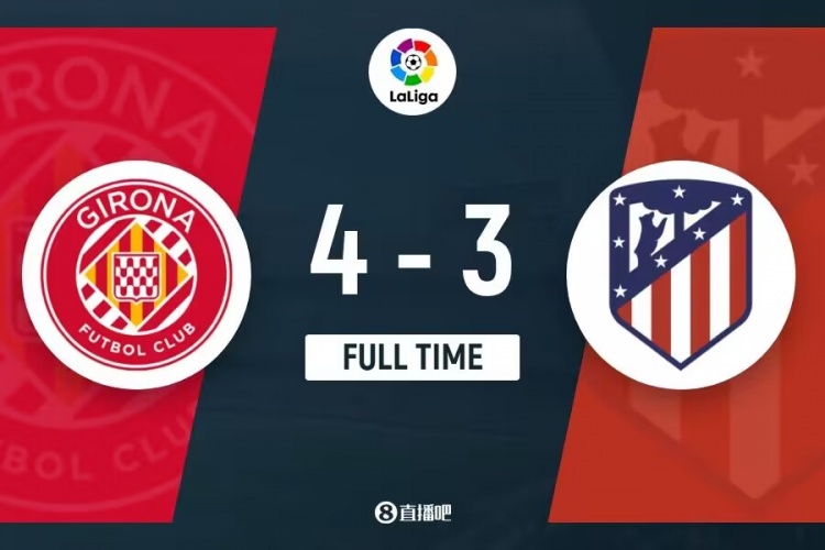 全场比赛结束,马竞3-4赫罗纳。