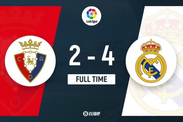 第92分钟,奥萨苏纳扳回一城!阿雷索禁区右路倒三角穆尼奥斯一脚爆射破门,奥萨苏纳2-4皇马。↓