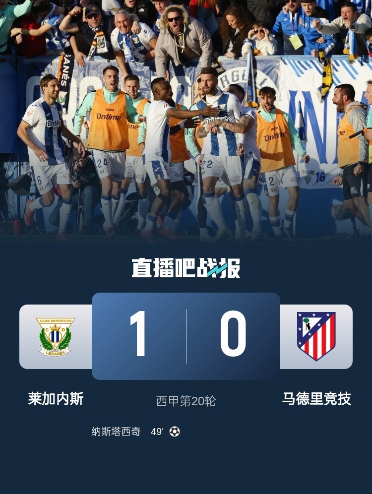 15连胜终结!马竞0-1莱加内斯 先赛仅领先皇马1分格子90分钟失点
