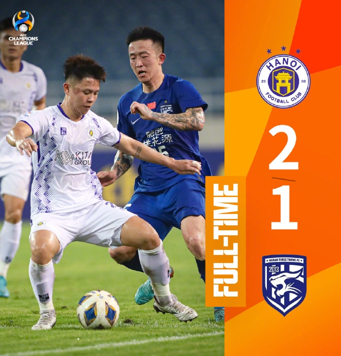 伤停补时5分钟。全场比赛结束,武汉三镇1-2河内FC。
