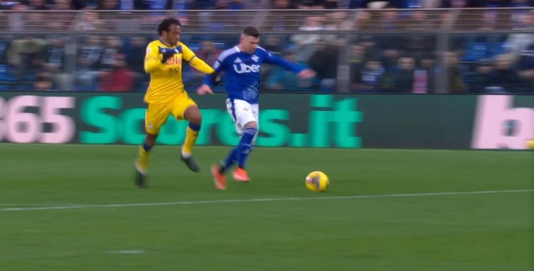 第90+3分钟,库特罗内拼抢撞倒贝拉诺瓦,情绪非常激动,裁判出示黄牌警告库特罗内。↓