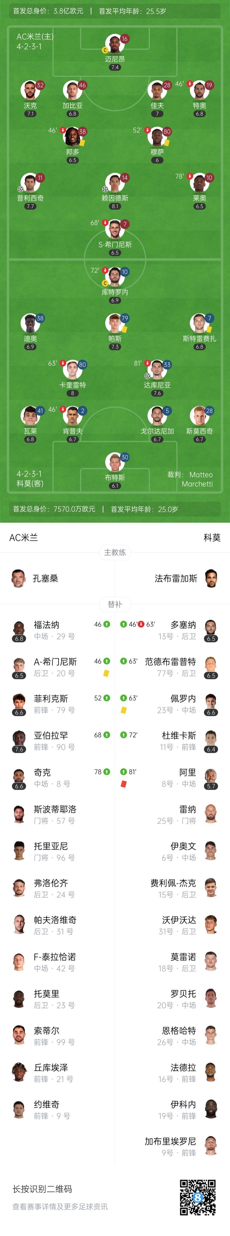 第33分钟,科莫前场左路攻势,交到弧顶再给禁区内,尼科-帕斯做球,达库尼亚禁区外推杆破门!AC米兰主场0-1落后科莫↓