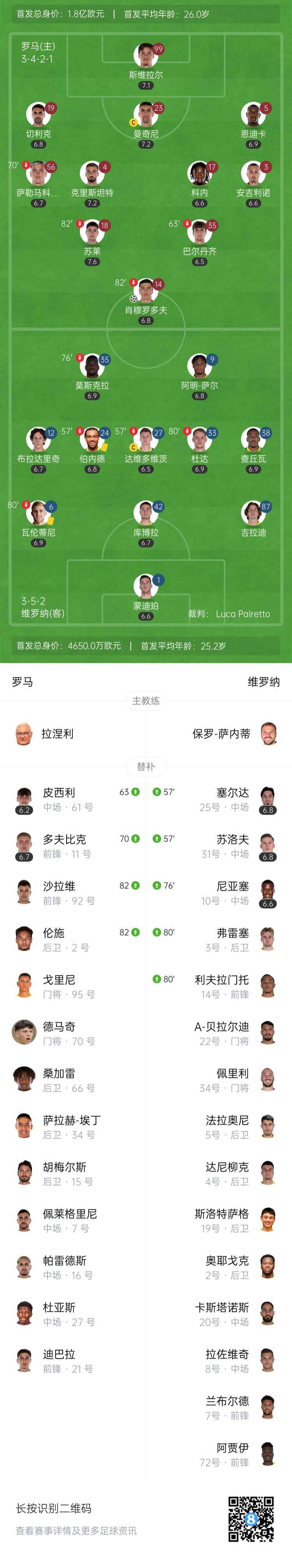 17轮不败!罗马1-0维罗纳先赛升第6 肖穆罗多夫制胜苏莱献助攻