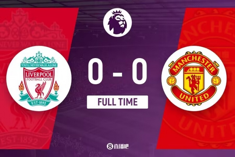 英超-利物浦0-0曼联让出榜首 红军狂轰34脚无果达洛特5秒连吃2黄