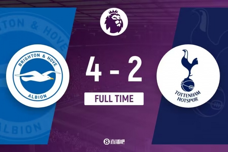 全场比赛结束,热刺2-4布莱顿。