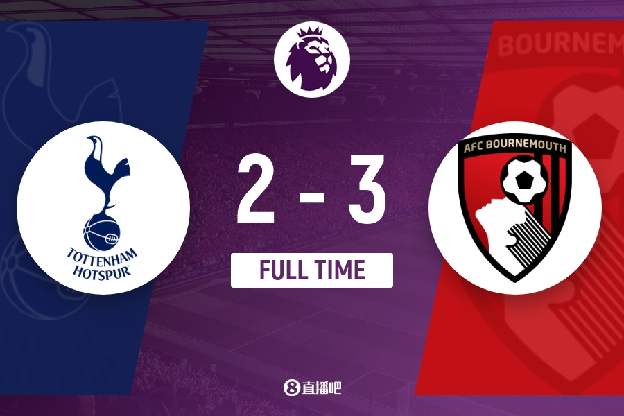 全场比赛结束,热刺2-3伯恩茅斯。