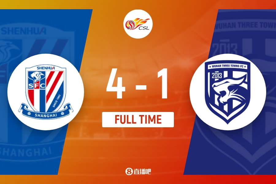 全场比赛结束,申花4-1武汉三镇。