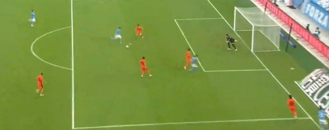 第25分钟,列昂索前场接直塞球过掉马镇后推射被门线解围。↓