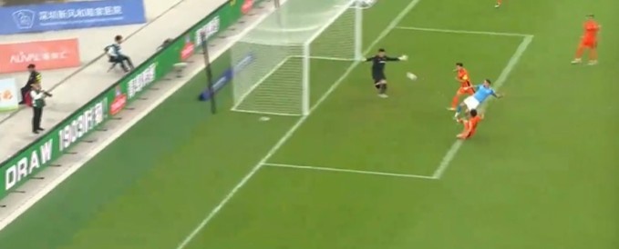 第9分钟,云南获得点球!胡睿宝禁区身后铲倒叶楚贵犯规,随后裁判经过var提示判罚点球,奥斯卡主罚点球被扑出,随后跟上补射破门,深圳0-1云南玉昆。↓