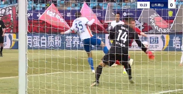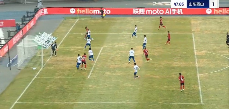 第5分钟,泰山右路传中,李源一前点头球后蹭顶高。↓