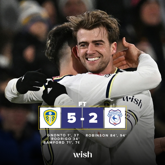 最后在比赛第84分钟和伤停补时阶段卡迪夫城扳回两城,比分最终定格在5-2,利兹联顺利晋级下一轮。