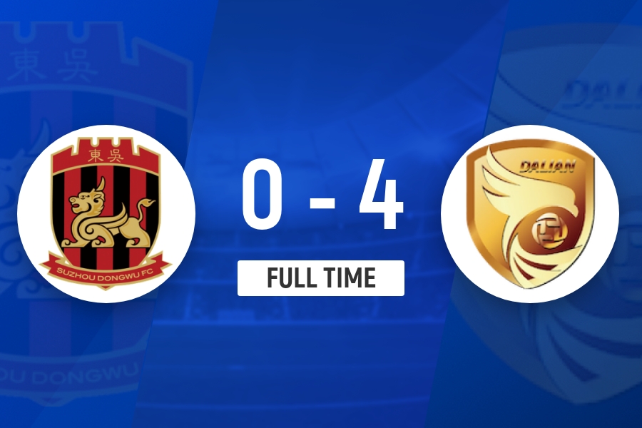 全场比赛结束,苏州东吴0-4大连鲲城。
