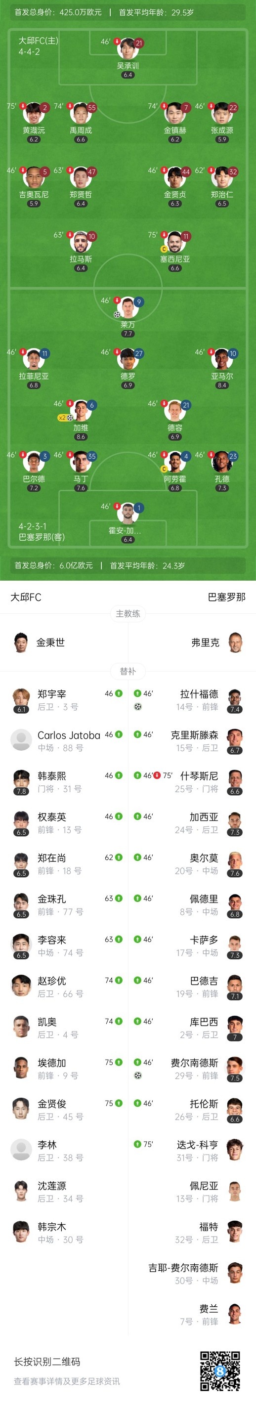 上半场补时3分钟,大邱0-3巴萨。