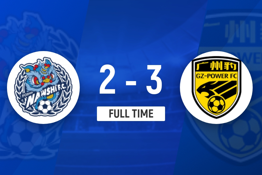 第90+5分钟,广州豹右路起高球传中,夏达龙禁区中路高高跃起头球完成绝杀,广东广州豹3-2佛山南狮。↓