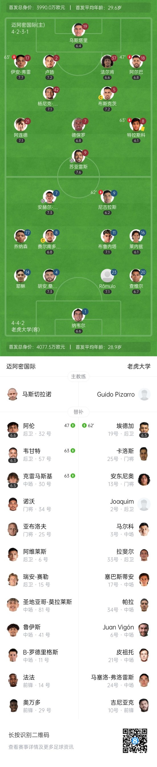 第66分钟,老虎大学扳平比分!科雷亚前场成功反超成功后到禁区单刀机会推射破门,迈阿密国际1-1老虎大学。↓