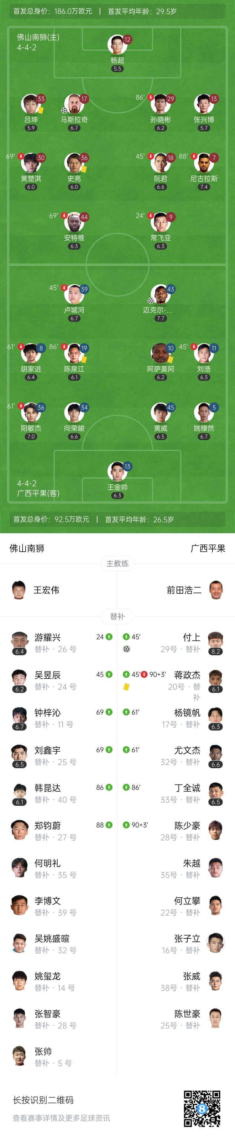 中甲-佛山南狮1-2广西平果仅高出降级区1分 广西近6轮4胜