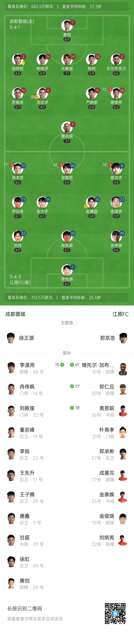 双方首发以及换人信息: