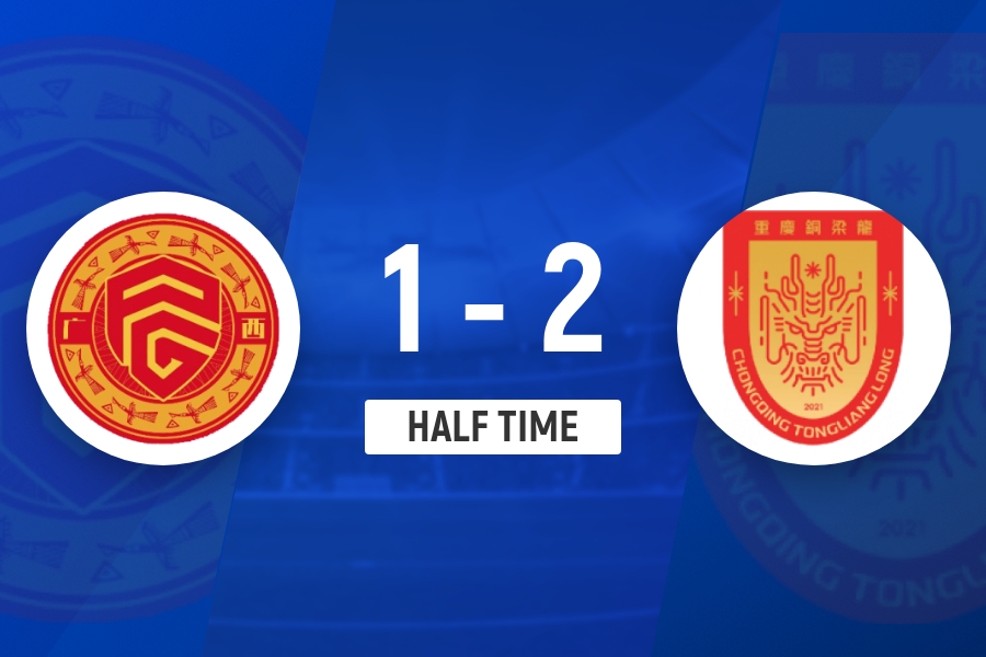 第75分钟,向余望禁区得球转身抽射破门扩大比分,重庆铜梁龙2-0广西平果。↓