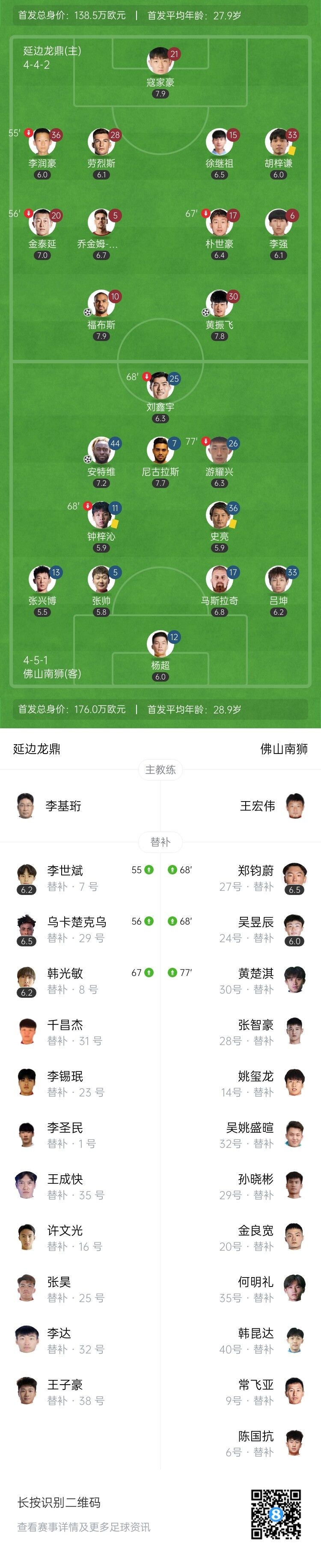 中甲-延边龙鼎4-1佛山南狮终结2轮不胜稳居第四 福布斯戴帽