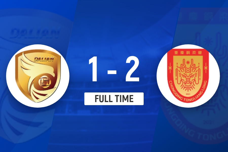 全场比赛结束,大连鲲城1-2重庆铜梁龙。