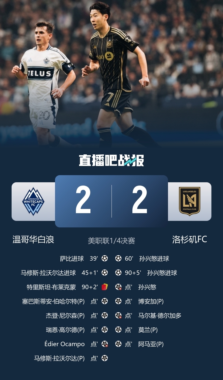 孙兴慜双响+点球大战失点!洛杉矶5-6不敌温哥华,无缘季后赛西决