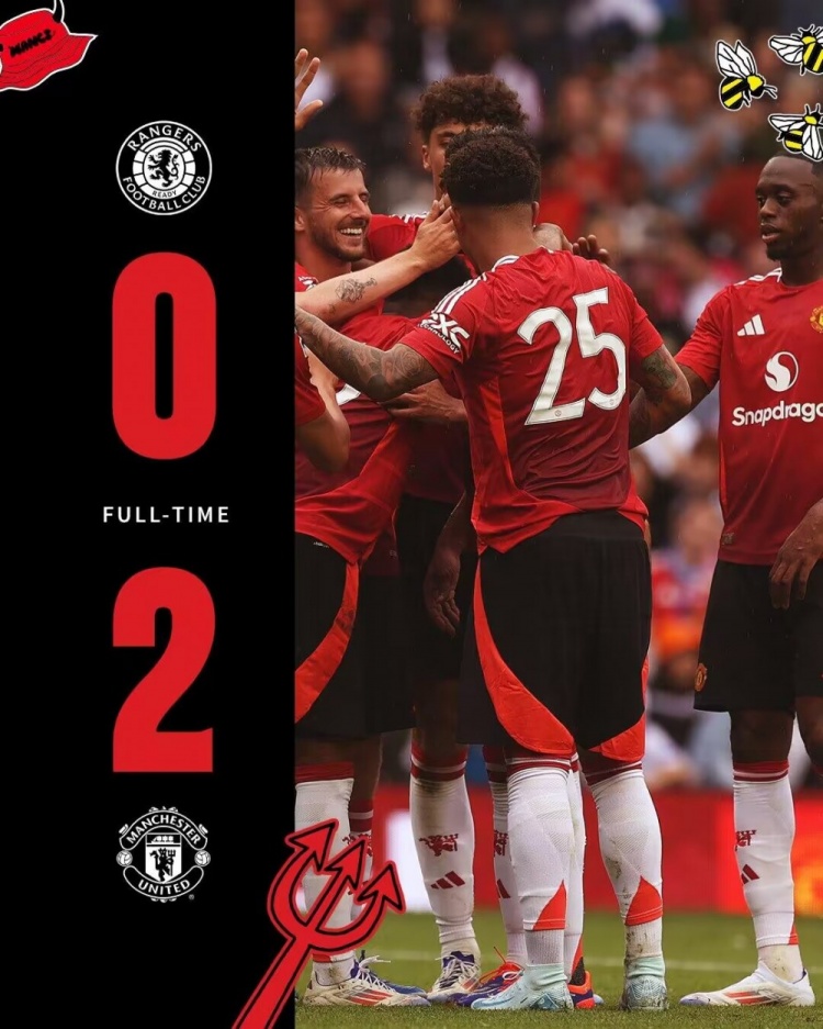 季前赛首胜!曼联2-0流浪者 芒特助攻迪亚洛破门约罗首秀出战半场