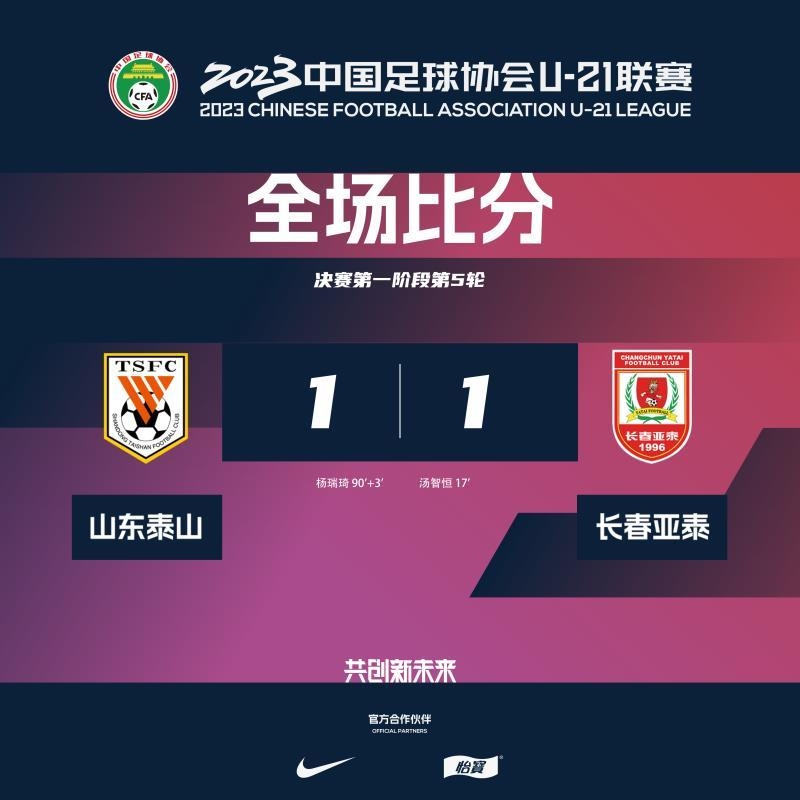 中超U21联赛总决赛第五轮-山东泰山1-1绝平长春亚泰 杨瑞琦救主
