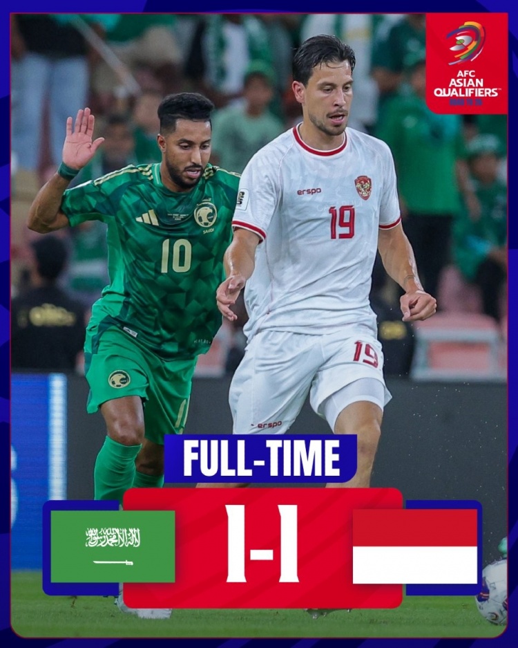 国足同组对手:沙特主场1-1印尼 ,国足7失球垫底