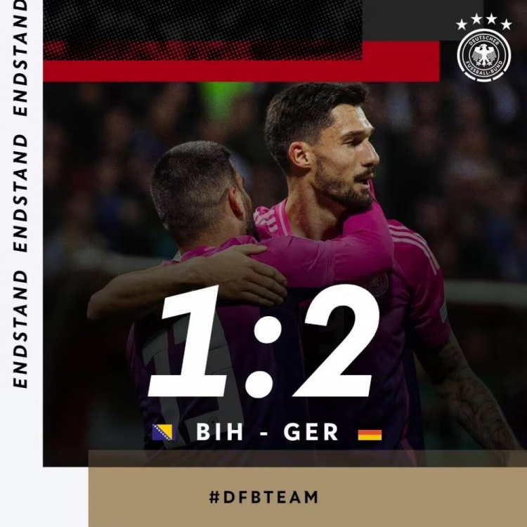 欧国联-德国2-1波黑继续位居小组第一 翁达夫双响维尔茨送助攻