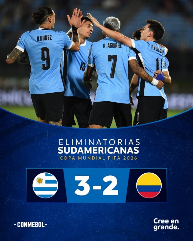 11月16日讯 北京时间11月16日上午8时整,世预赛南美区第11轮展开角逐,乌拉圭坐镇主场迎战哥伦比亚。上半场金特罗任意球打破僵局,下半场桑切斯自摆乌龙,阿古利3分钟完成反超,戈麦斯补时96分钟扳平,乌加特101分钟上演绝杀。最终乌拉圭主场3-2险胜哥伦比亚,乌拉圭取得近5场世预赛首胜。积分榜方面,乌拉圭积19分升至第2,哥伦比亚同积19分,因净胜球劣势位居第3。