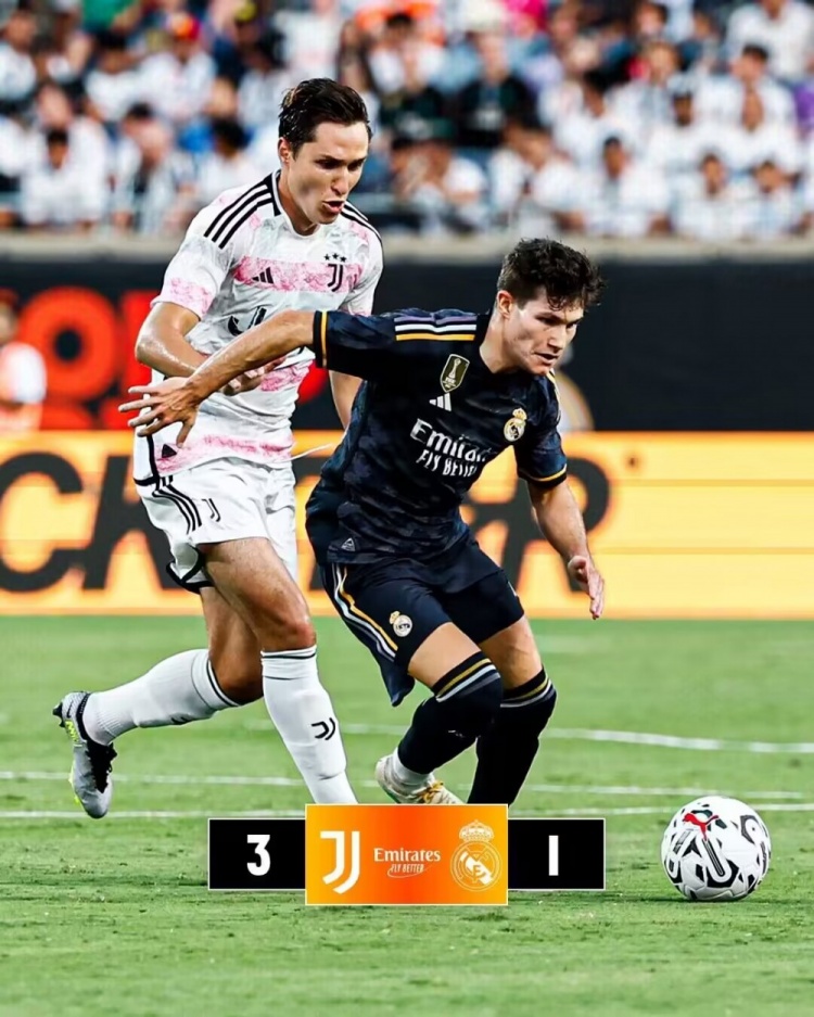 8月3日讯 北京时间7点30,足球友谊赛,皇马对阵尤文。上半场补时分钟。半场战罢,小基恩49秒闪击破门,小维阿打进尤文处子球,克罗斯手术刀直塞助攻维尼修斯单刀破门。易边再战,双方先后大面积更换球员,读秒阶段弗拉霍维奇再下一城。最终尤文3-1皇马。