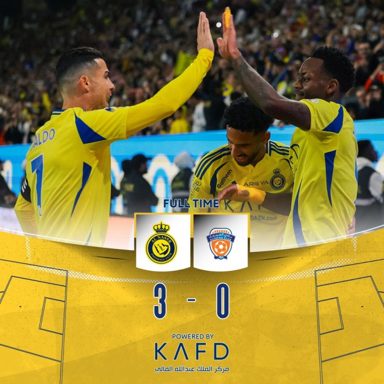 全场比赛结束,利雅得胜利3-0击败费哈。