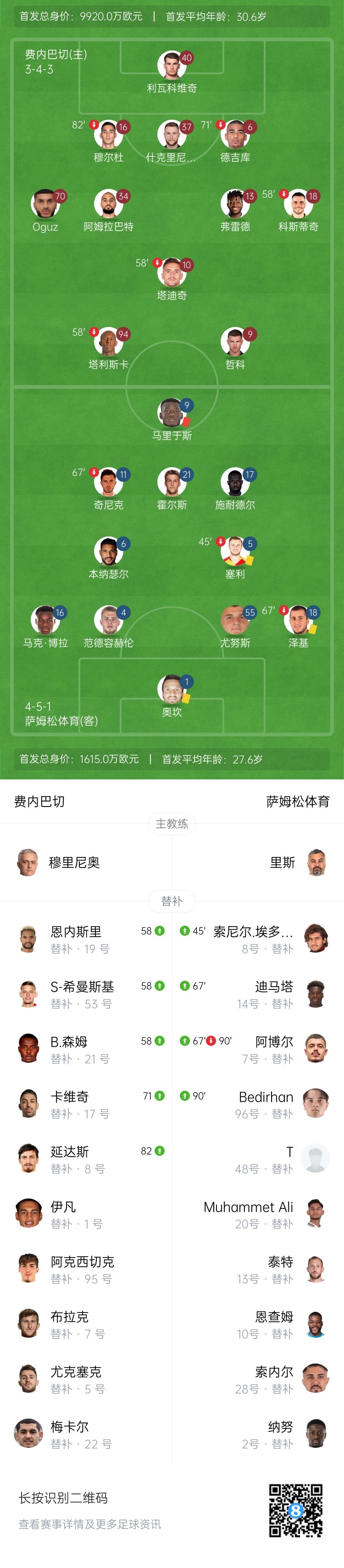 第75分钟,萨姆松体育前锋穆罕默德马吉捂脸倒地久久不起,有碰瓷嫌疑!穆里尼奥暴怒!主裁向穆罕默德马吉出示本场第二黄!两黄变一红将他罚下↓