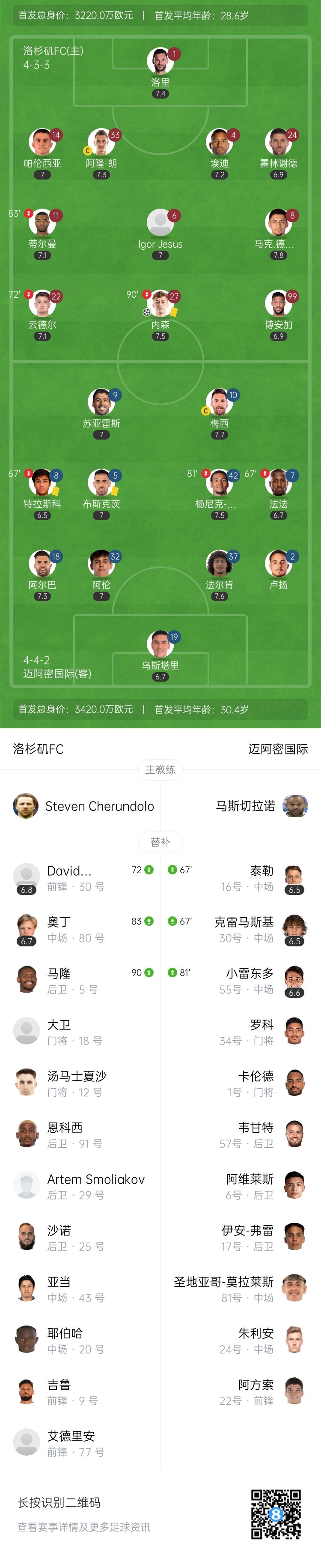 全场比赛结束,迈阿密国际0-1洛杉矶FC。