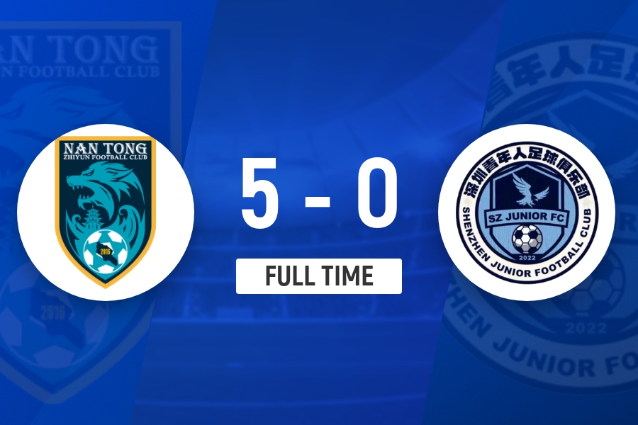 全场比赛结束,南通支云主场5-0击败深圳青年人。