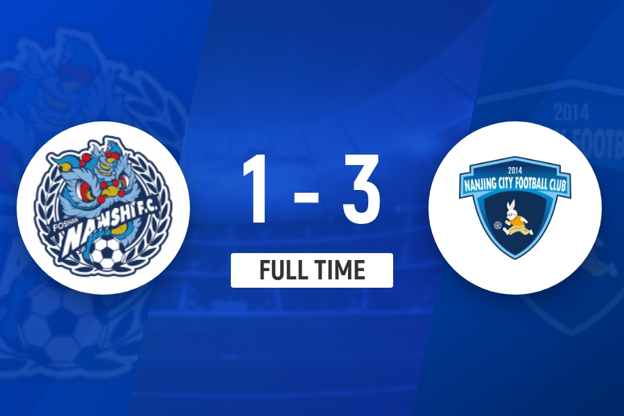 全场比赛结束,佛山南狮1-3南京城市。